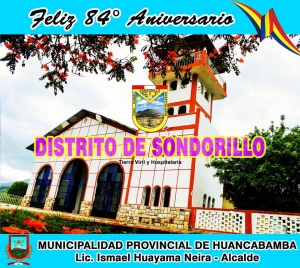 Que, el distrito de SONDORILLO es uno de los ocho distritos que conforman nuestra provincia de Huancabamba, perteneciendo al departamento de Piura, al norte del Perú. Que, el distrito de SONDORILLO fue creado por Ley N° 8066 de fecha 27 de MARZO del año 1935, siendo Presidente de la República Óscar Raimundo Benavides Larrea, conmemorando el presente año su 84° aniversario de creación política.